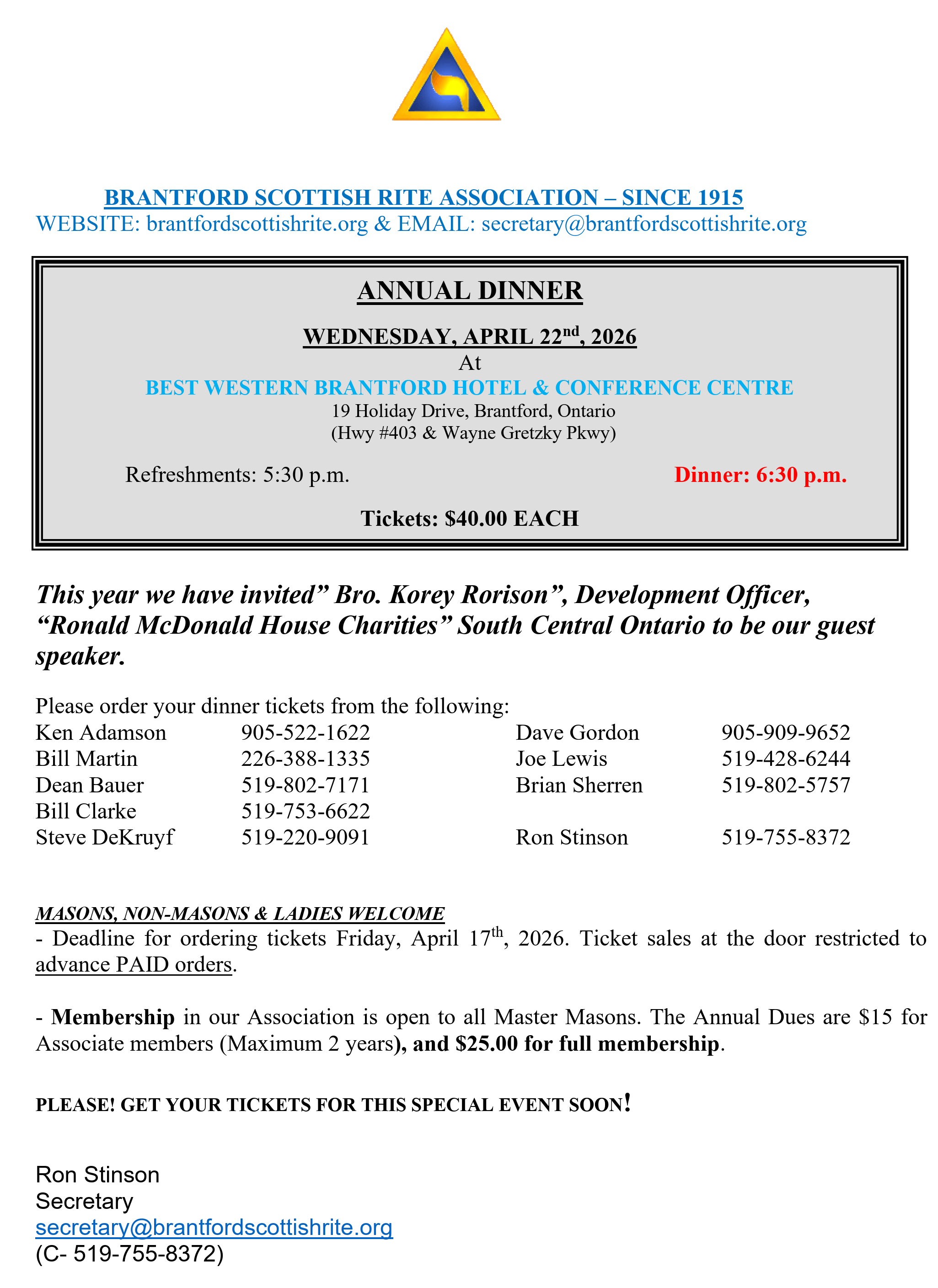 The Brantford Scottish Rite Association is a branch of the Freemasons fraternity.